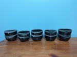 Sweet small nesting dish set. Black speckled main colour with speckled blue lip added to melt into the glaze perfection.